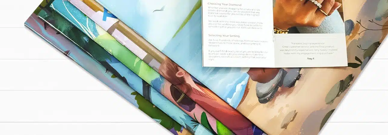 - Saddle stitching costs less, perfect binding costs more—not only in terms of design, materials, and production, but often to ship, too.